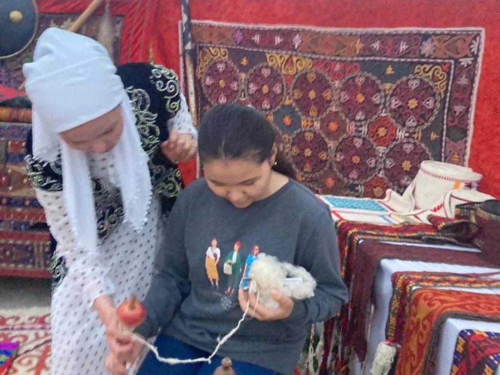 Шара барысында музей қызметкерлері жүн түтіп, жүн иіруден, құрт жасаудан көрініс көрсетті.