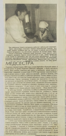 Медицина күніне орай, "Ақ халатты абзал жандар!" тақырыбында, медицина саласында 40жылдан астам уақыттан бері еңбек етіп келе жатқан медбике Жанабаева Салима Дүйсенқызымен кездесу өтті. Шара барысында Салима Дүйсенқызы медициналық құралдардан жасақталған көрмемен таныстырып, оқушылардың сұрақтарына жауап берді.